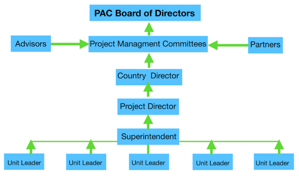 The Board is responsible for the overall activities of PAC. This includes the evaluation of projects, providing advice and guidance to both central and Field Directors and officers, financial evaluations and boycotting, calling monthly, quarterly, annual and emergency meetings. Each board member has the right of one vote in any decision making process. Board members receive no financial compensation for their contributions to PAC.